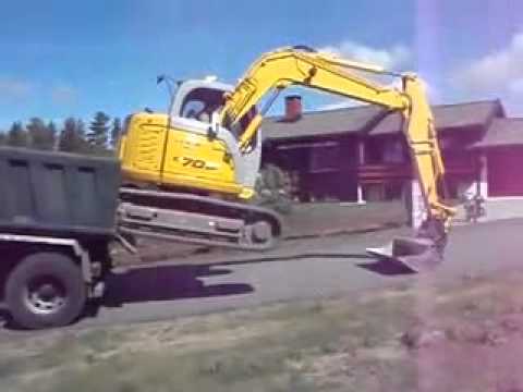 סרטון של נהג טרקור שיורד עם הטרקטור שלו ממשאית גובהה מאוד ללא שום עזרה , למתקדמים בלבד !